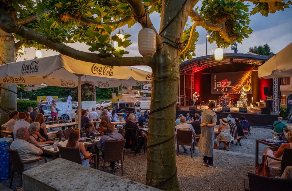 Die Bühnen und Bänke waren bereit, die Gäste kamen zahlreich und gut gelaunt, und die spielfreudigen Musiker/-innen brachten so viel Power ins Dorf, dass sogar die aufziehenden Gewitterwolken den Anlass verschonten – na ja, zumindest fast ... Der Ambiance tat dies dennoch keinen Abbruch, und so liess es sich auch problemlos verschmerzen, dass die ibw jazz night für einmal ein klein wenig anders war als gewohnt.