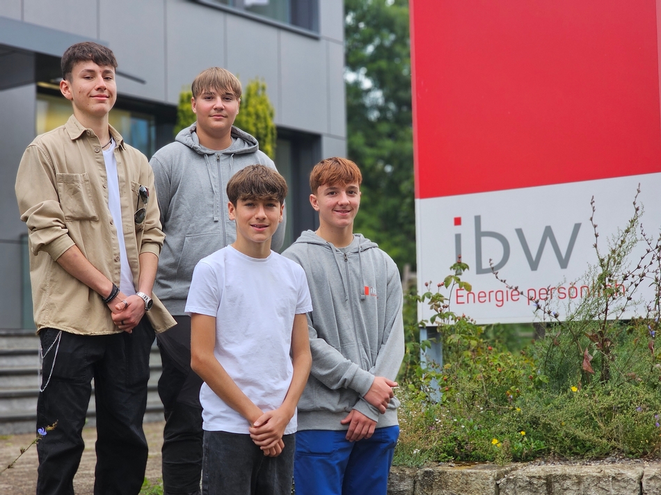 Herzlich willkommen bei der ibw! Anfang August haben vier junge Lernende bei uns ihre berufliche Karriere gestartet (von links nach rechts):